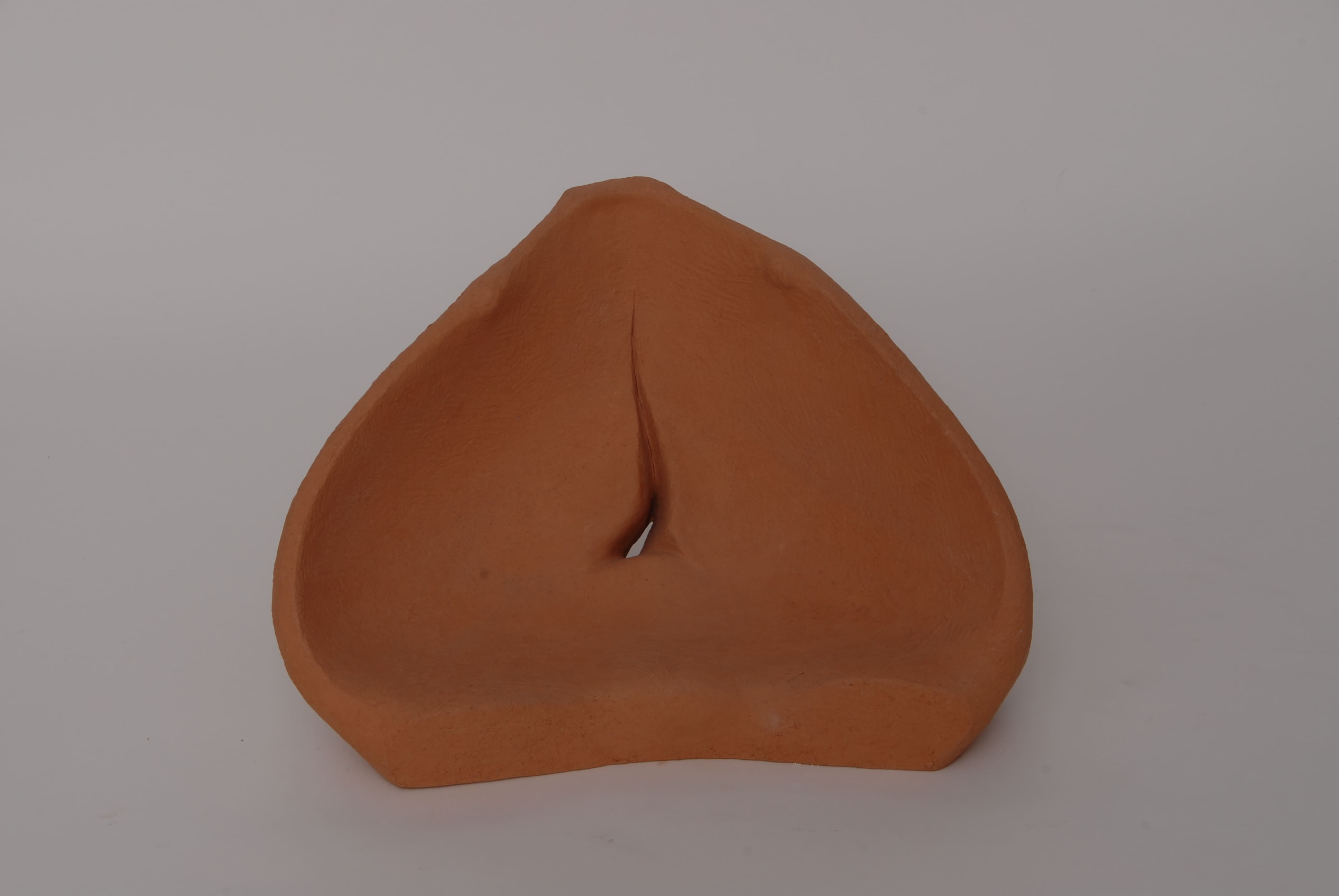 トルソのシリーズ 最初は「横のトルソ」として大作をはじめ横15p前後の小品を優に100点を超える数を造りました。造形もさまざまに変化し、ある作品から胴体の中心部分に縦に切れ目をいれるようになりました。これは数多く造られている仏陀座像のなかに釈迦自らの手で腹を左右に開き胎内に有る仏像を示しているポーズに強い刺激と暗示を受けたからです。制作の変化をご覧ください。