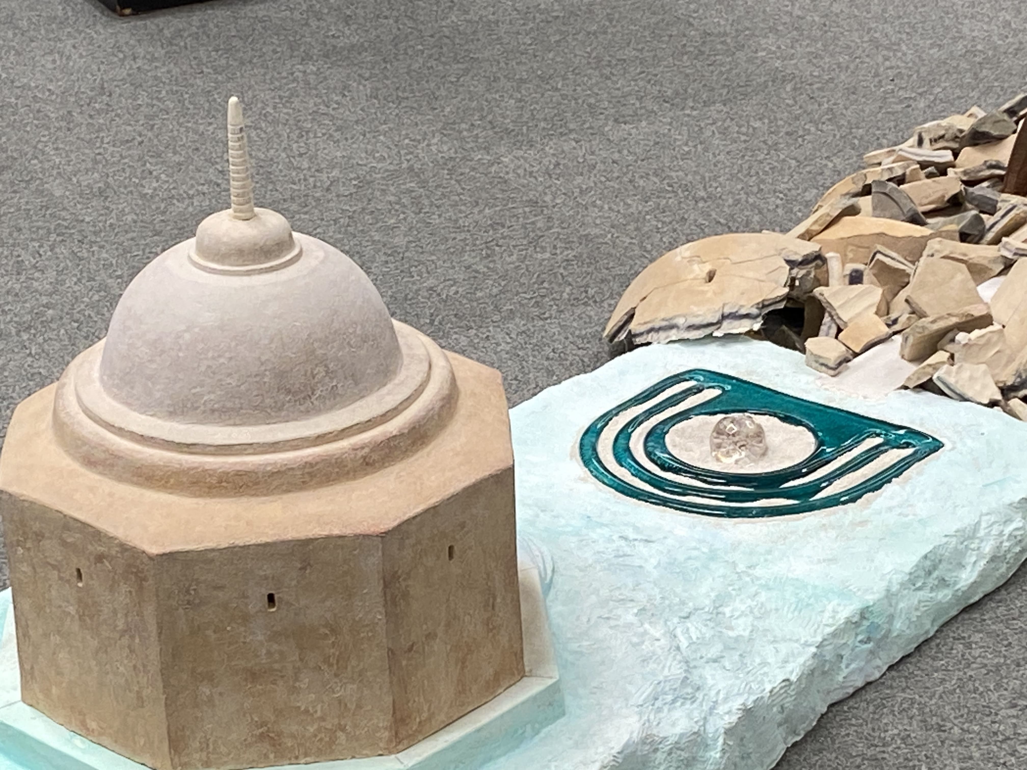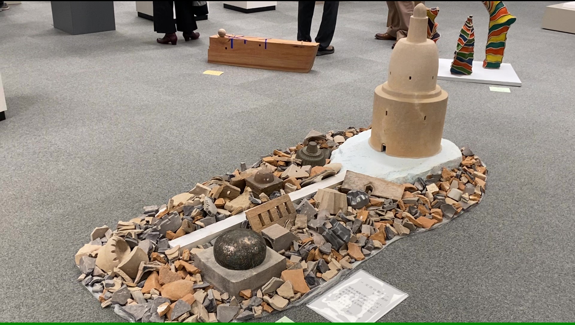 「天空の聖堂」の作品と制作風景です。憎悪と報復の連鎖を断ち切り、民族や宗教・宗派の違いを乗り越えて、すべての人々が集える「聖なる空間」を創造しました。